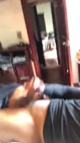 Young black thug stroking his fat monster solo