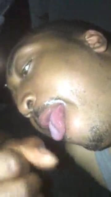 Getting a facial from a huge meaty black cock