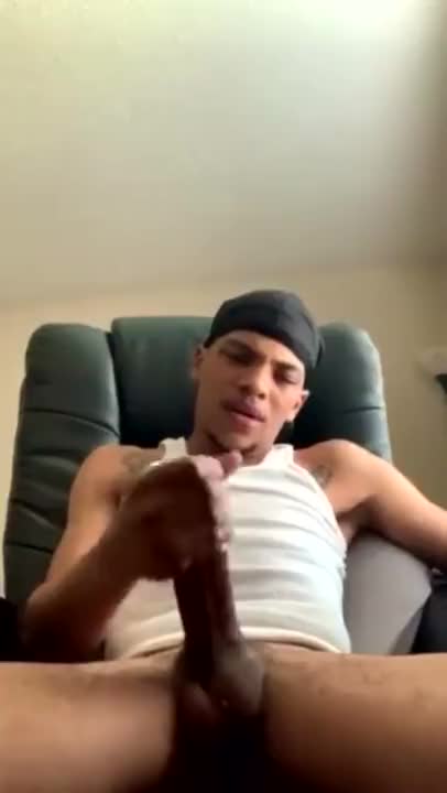 Trade stroking his long dick moaning like a female busting a nut