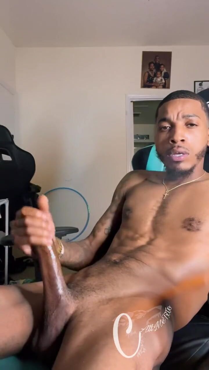 Black stud stroking his delicious long beefy cock