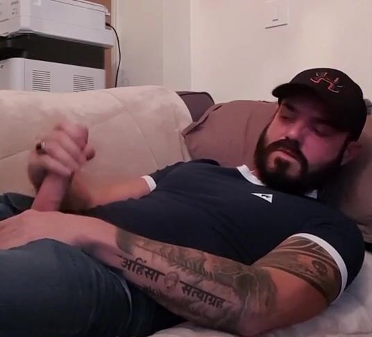 Sex black bearded dude stroking his tasty monster