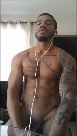 Cute muscular tattooed latino spanking his big cock