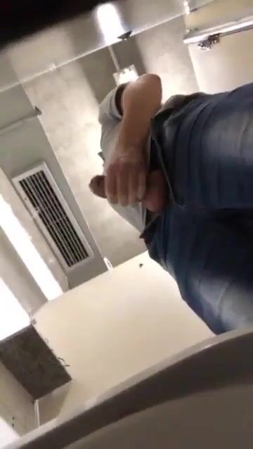 Dude lets me record him jerking his fat dick under the stall