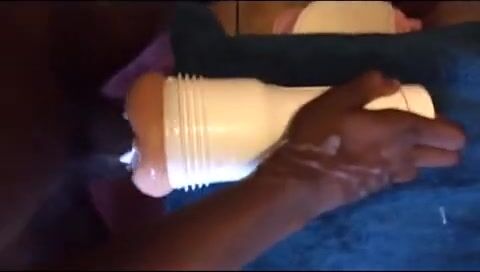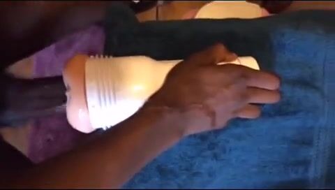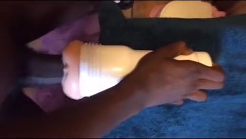 Black guy using his new toy while shooting a huge load