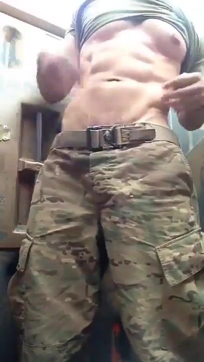 Horny soldier flops out his big cock