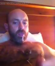 Hot muscular tattooed black dude wanking his cock in front of the window