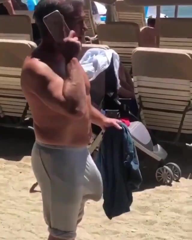 Dad's obscene beach bulge