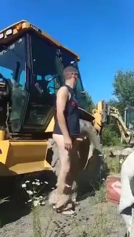 Contruction worker slams his hole on the job site