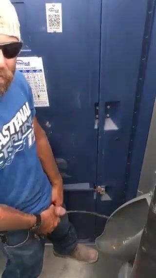 Hairy roughneck porta-potty piss