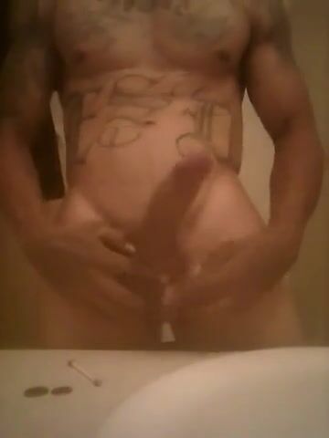 Handsome tattooed latino stud shows off his huge thick cock