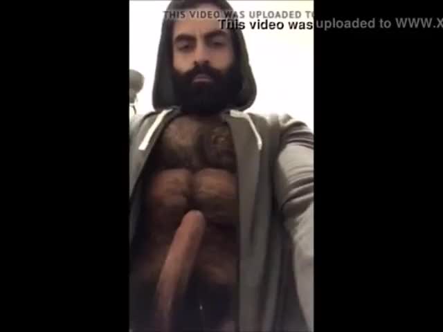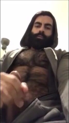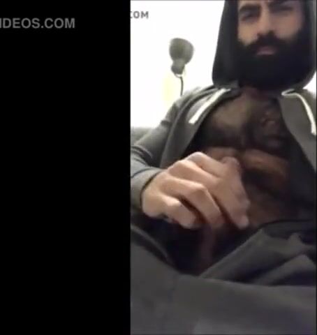 Hairy bearded bear strokes his cock outdoor