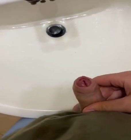 Uncut cock dumps cum onto fit lads 6 pack