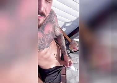 straight and married security guard shooting a load on cam